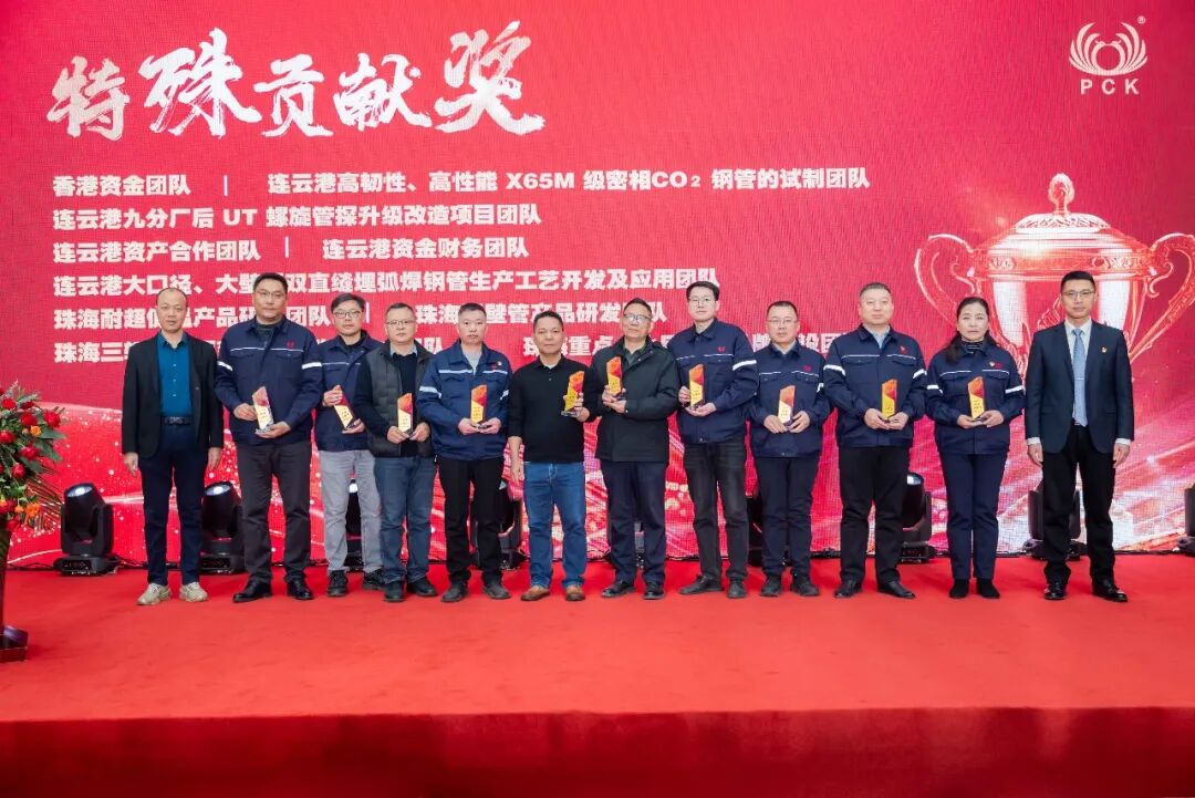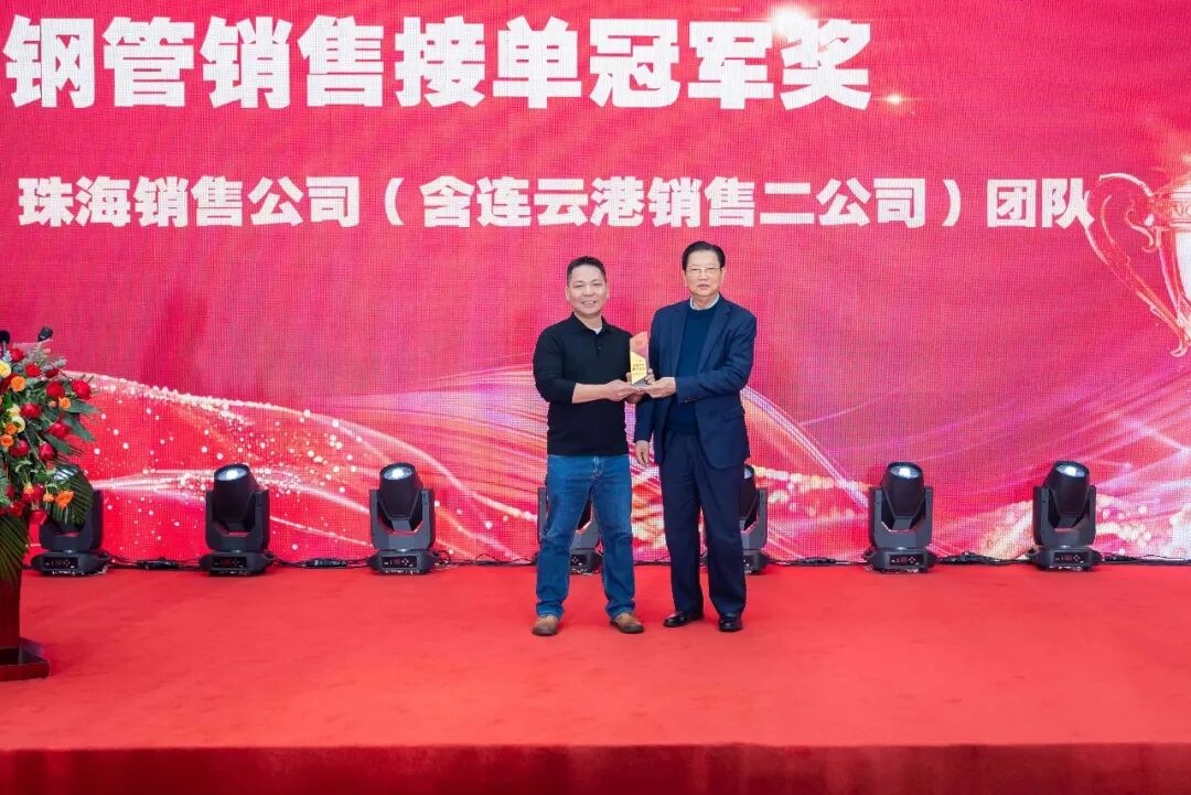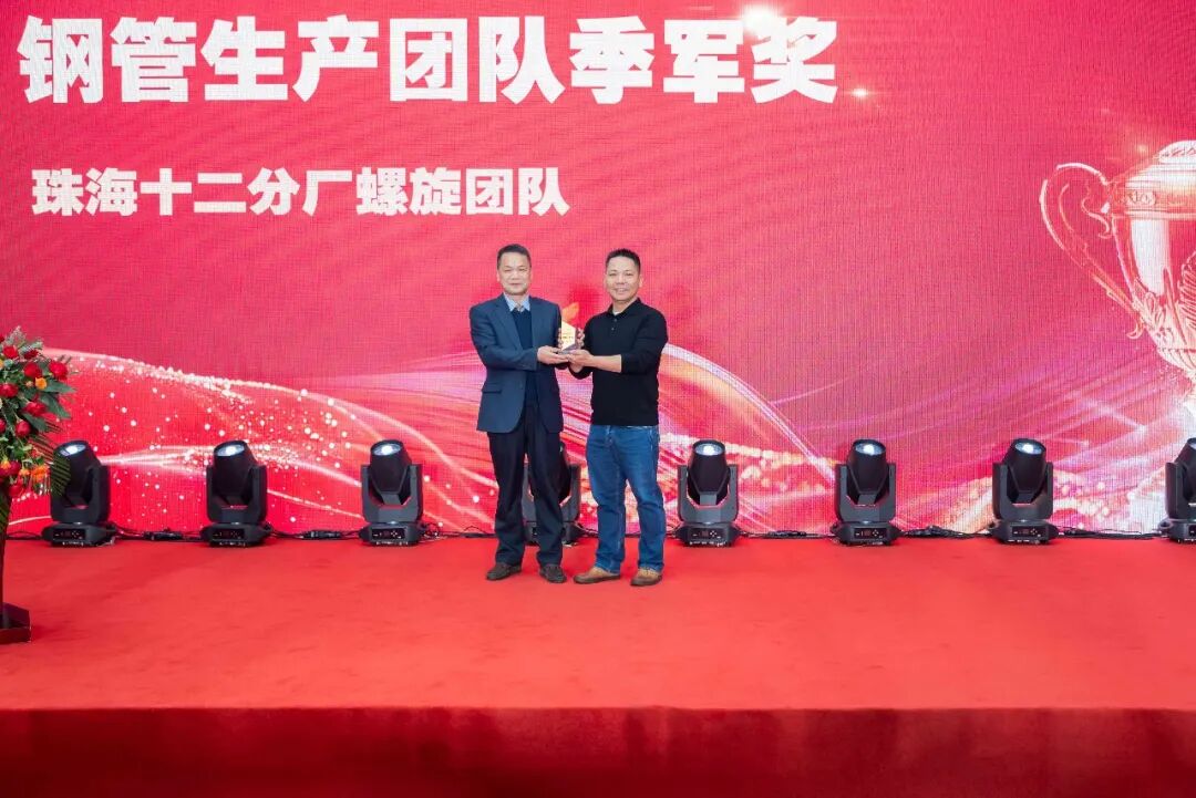 岁月鎏金,奋楫者先。珠江钢管2025年的稳健发展,离不开每一位珠钢人的辛勤耕耘与倾力付出。表彰环节重磅登场,集团董事会主席陈昌、执行董事陈兆年、总经理但昭学、珠海基地董事长苏章卓及连云港基地董事长郭小龙,共同为获奖代表颁奖。获奖队伍中,有脚踏实地、凝心聚力保障订单交付的生产分厂;有持之以恒、甘于奉献的特殊贡献团队;更有深耕市场、勇闯难关的销售先锋。这份荣誉,是对他们过往付出的肯定,更是对全体珠钢人的激励。