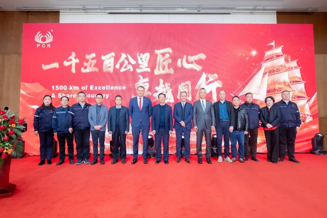 庆功仪式上,集团副总经理李宜乐代表珠江钢管,向远道而来的东非原油管道公司嘉宾致以热烈欢迎。东非原油管道公司建造总监胡雪峰、项目主任Emmanuel Blarez、总裁Guillaume Dulout先后登台致辞,盛赞珠江钢管在项目执行过程中的卓越表现,并表达了未来持续深化合作的友好意向。