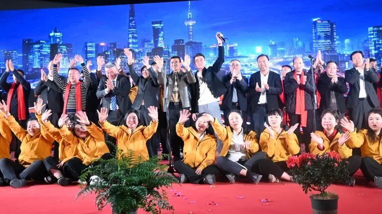 在晚宴尾声,所有经销商伙伴与公司领导、全体员工齐聚舞台,共同合唱。