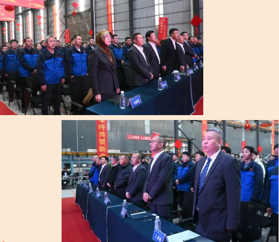 上午8时,全体参会人员在四厂区有序集结入场。公司领导班子在会场入口热情迎接每一位员工及嘉宾,伴随着礼炮齐鸣、大会正式拉开帷幕。