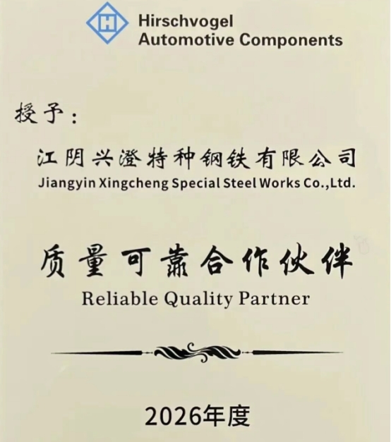 1月27日,在德西福格汽车配件(平湖)有限公司举办的年度合作伙伴颁奖交流会上,江阴兴澄特种钢铁有限公司凭借其卓越的产品品质、完善的服务体系及深厚的合作积淀,从众多伙伴中脱颖而出,成为本年度中国区唯一荣获“质量可靠合作伙伴”大奖的企业。这一殊荣,不仅彰显了兴澄特钢在特种钢材领域的绝对实力,更标志着其产品与服务获得了国际顶尖供应链体系的高度认可。