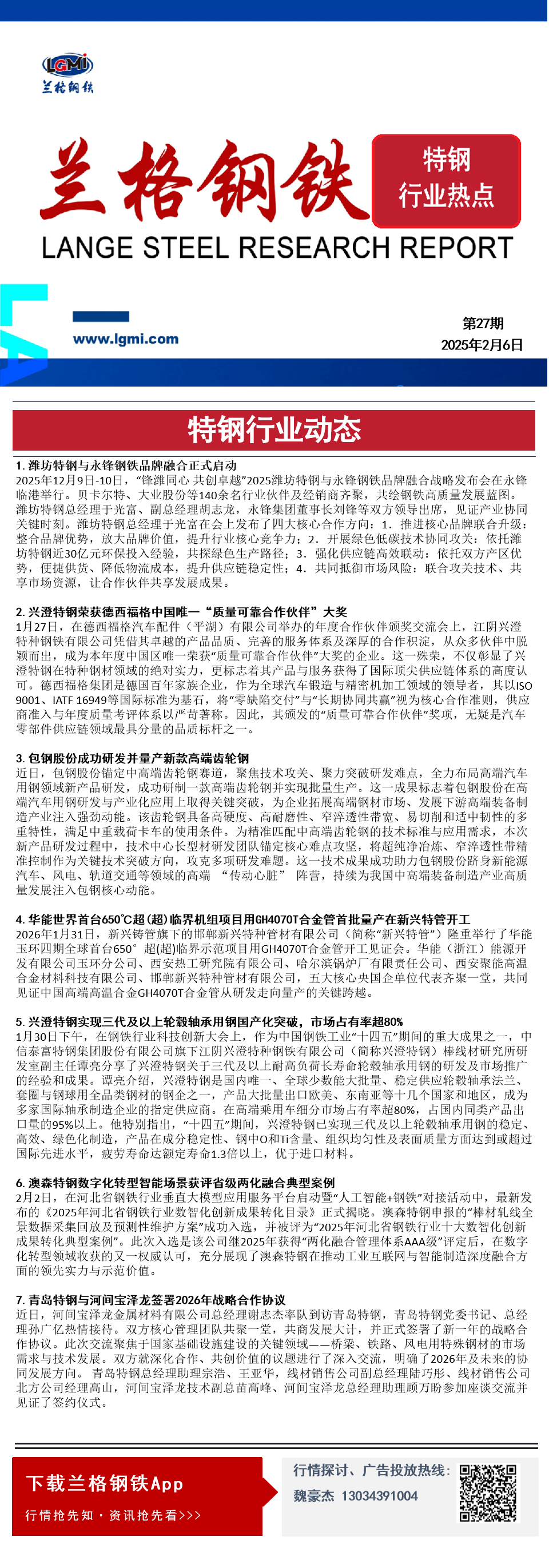 - 本周“特钢行业 我知道”(第二十七期)2026/2/6