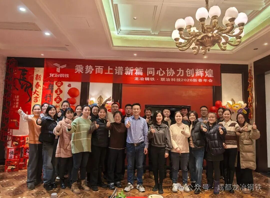 岁序更替,华章日新。2月7日,龙冶钢铁·联冶科技以“乘势而上谱新篇,同心协力创辉煌”为主题的2026年度经营总结会暨新春年会活动圆满举行。龙冶成都、重庆及联冶科技三地管理人员齐聚一堂,回溯过往一年的砥砺征程,在欢声笑语中凝聚共识,共绘新一年的发展蓝图。