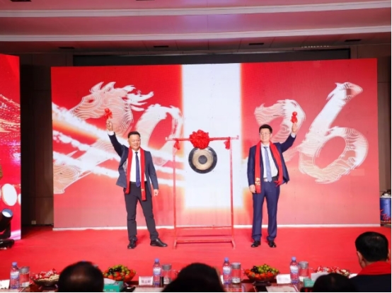 随后,傅士刚董事长与郭栋总经理共同敲响寓意“一马当先、再创辉煌”的新春金锣,铿锵锣声振奋人心,宣告新一年征程正式启航。
