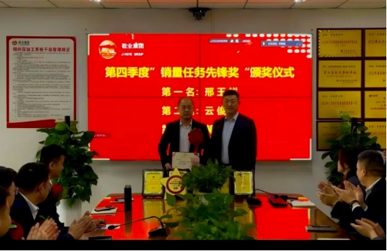 2026年2月12日,敬业精密制管举行2025年第四季度暨年度表彰大会,销售副总及营销科全员齐聚一堂,总结成绩、表彰先进。