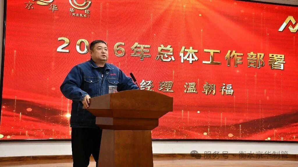 总经理温朝福做动员讲话。他首先向全体京华员工及家属致以新春的问候,并回顾了2025年公司在复杂环境下取得的成绩,肯定了全体员工的辛勤付出。