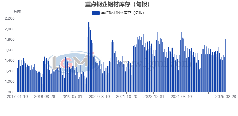 - 【钢厂库存】2月中旬重点钢企钢材库存继续上升2026/2/26