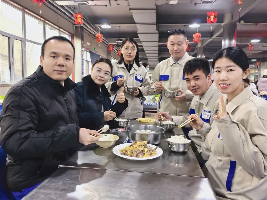 在云南工厂,活动当日,员工餐厅早早备好了糯米黑芝麻、香甜花生等多种口味的汤圆。餐厅师傅们有条不紊地煮制,热气腾腾的汤圆出锅后,迅速被分装成一碗碗,传递到每一位员工手中。雪白的汤圆软糯香甜,温热的汤汁暖意融融,员工们结伴用餐,驻足交谈,食堂内处处洋溢着团圆、祥和的节日氛围。