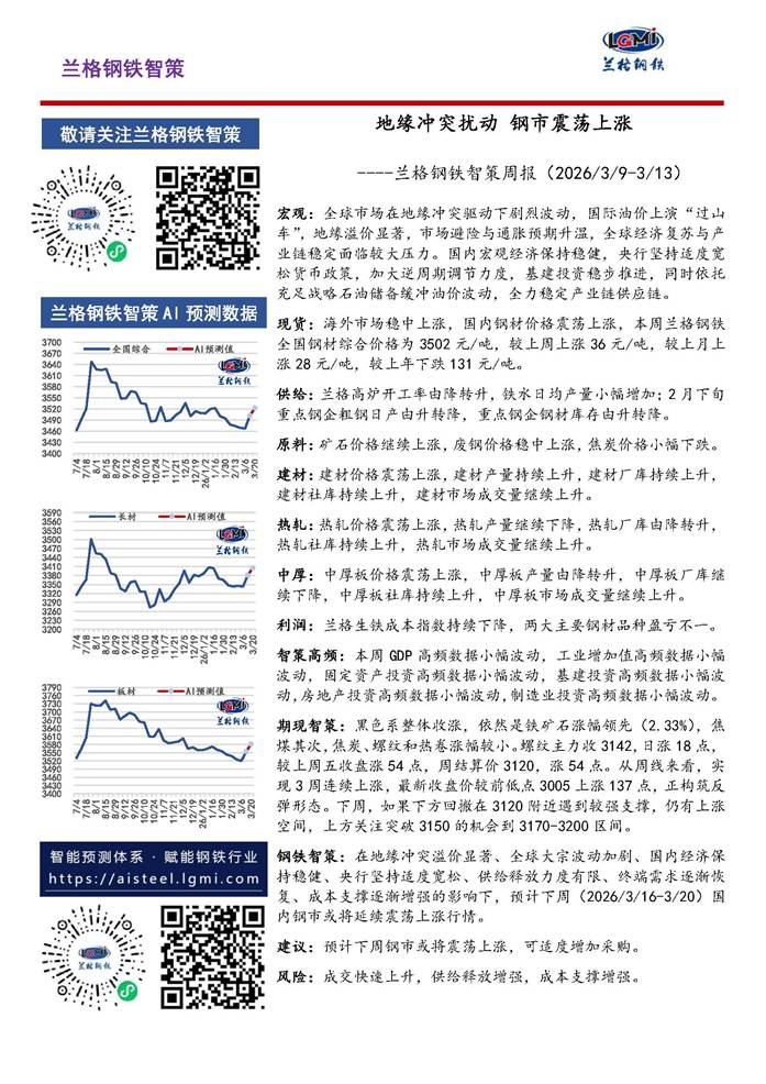 (注:本文节选自《兰格钢铁智策周报(2026/3/9-3/13)》,相关图表及更多分析敬请关注钢铁智策/研报/周度研报下相关内容)