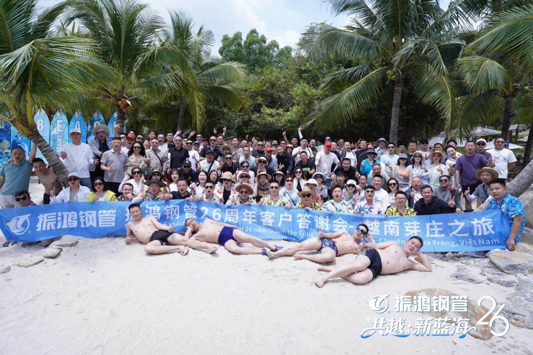 二十六年匠心筑梦,今朝聚势远航。2026年3月10日-13日,振鸿钢管26周年客户答谢宴于越南芽庄盛大启幕,我们以海为媒,以礼相待。与来自五湖四海的合作伙伴齐聚一堂共度四天三晚的温情之旅,在阳光、海浪与欢笑中,共同见证振鸿钢管二十六载的奋斗与荣光。