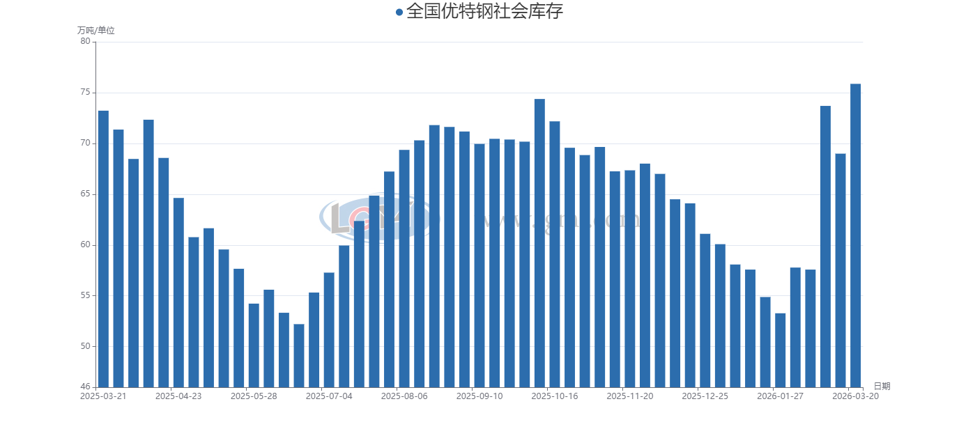 全国优特钢社会库存(3.13-3.20)