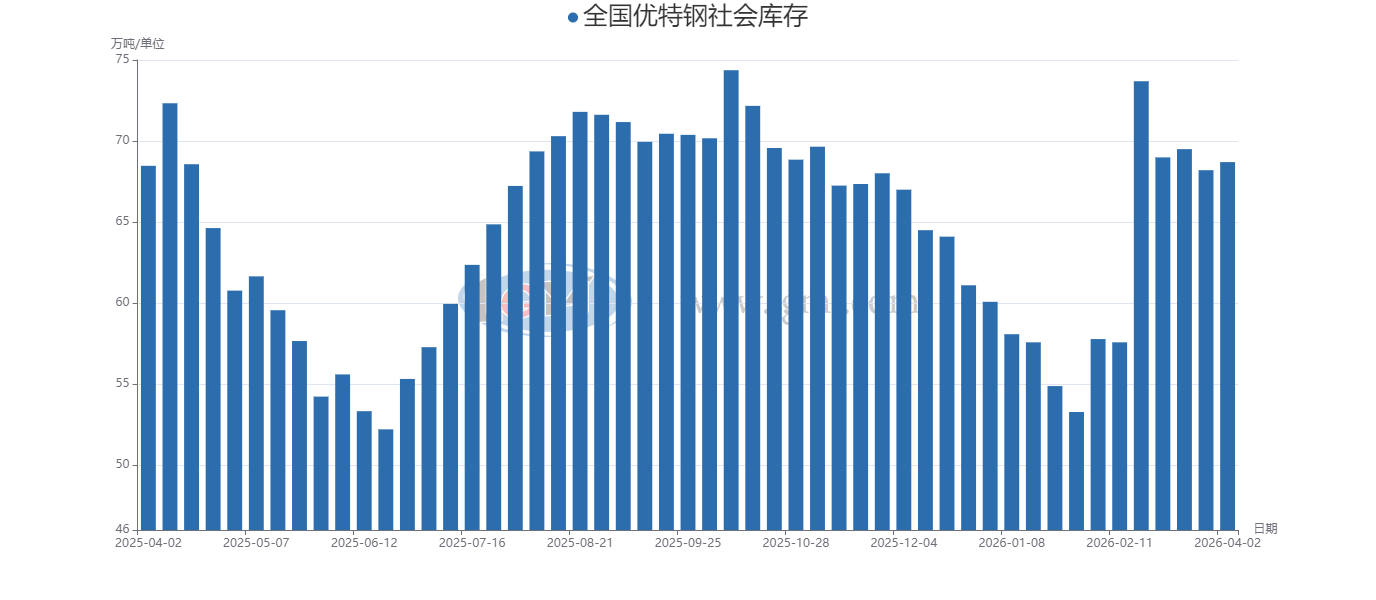 全国优特钢社会库存(3.27-4.2)