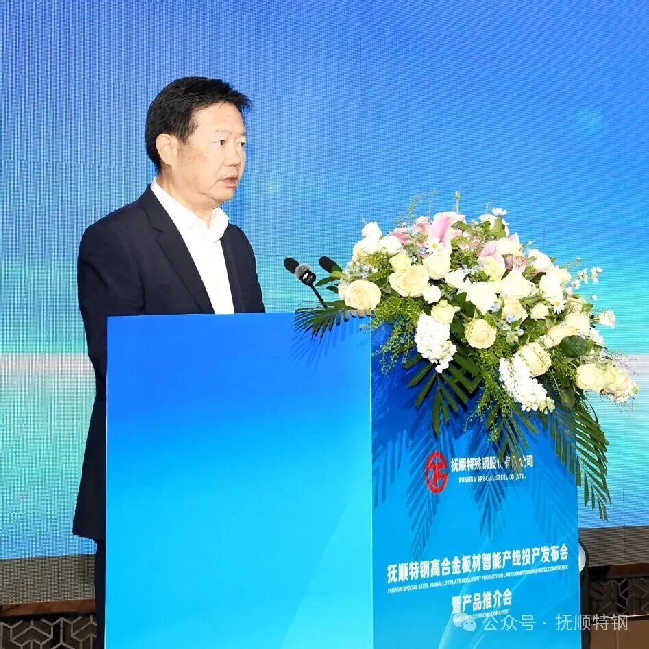 翟德怀受辽宁省副省长王利波委托代表辽宁省政府致辞。他说,抚顺特钢高合金板材智能产线正式投产是抚顺特钢转型升级的新跨越,是辽宁特钢产业高端跃升的新突破,也是辽宁努力服务国家战略,筑牢产业链安全的新支撑。他向长期以来关心支持辽宁工业振兴发展的省内外企业、各界朋友致以衷心感谢。他说,特殊钢是高端装备制造、航空航天等战略性新兴产业不可或缺的关键材料。抚顺特钢作为我国特钢领域的国家队,始终坚持自主创新、高端引领、深耕主业、勇攀高峰。此次投运的智能产线集绿色、智能、高效于一体,代表了当前国内高合金板材制造最先进水平。这条产线既是企业加快数字化转型、智能化升级的标杆,更是辽宁省推进制造强省、打造万亿级冶金新材料产业基地的生动实践。这条产线的投产必将有力提升辽宁省特钢产品的市场竞争力,为全省制造业高质量发展注入新动能。