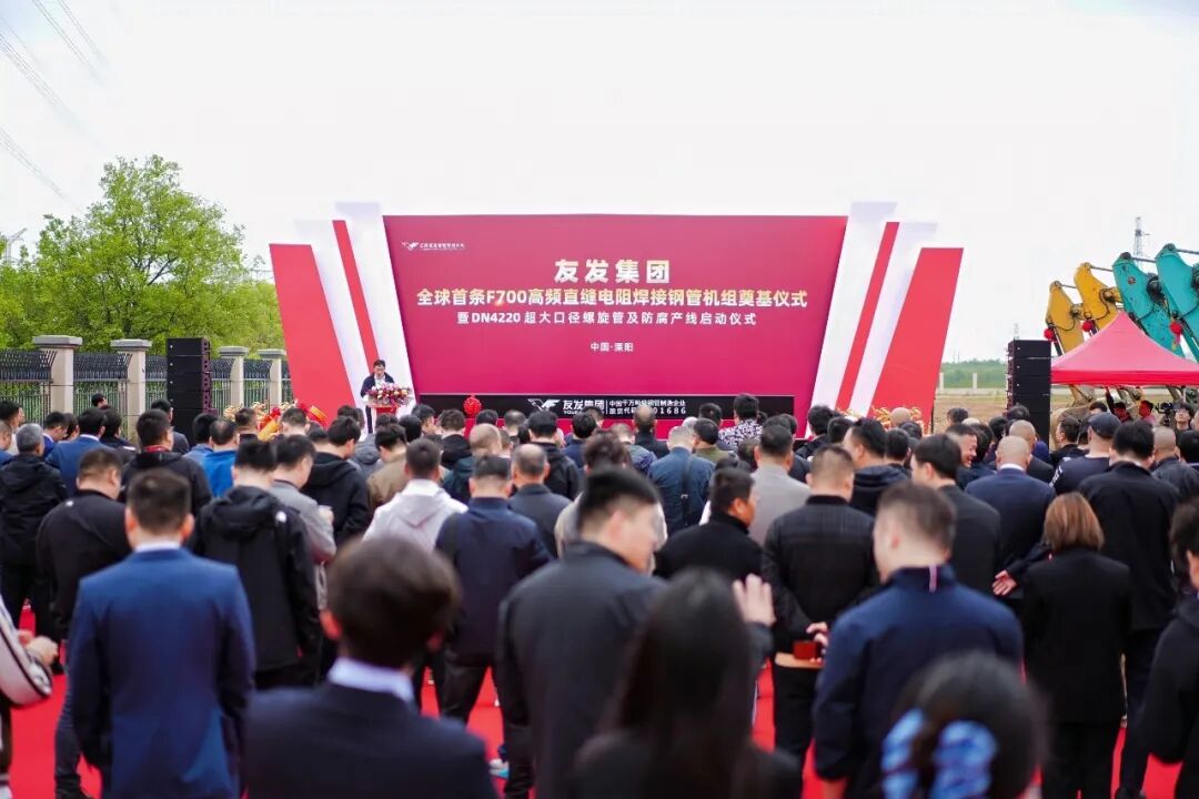 春风浩荡万象新,擎领行业启新程。近日,全球焊接钢管行业里程碑盛典——友发集团全球首条F700高频直缝电阻焊接钢管机组奠基仪式暨DN4220超大口径螺旋管及防腐产线启动仪式友发集团江苏基地隆重举行。江苏友发领导班子、行业权威专家、核心合作伙伴共计200人齐聚中国溧阳,共鉴荣耀时刻,共绘中国焊管迈向全球领跑的宏伟蓝图。