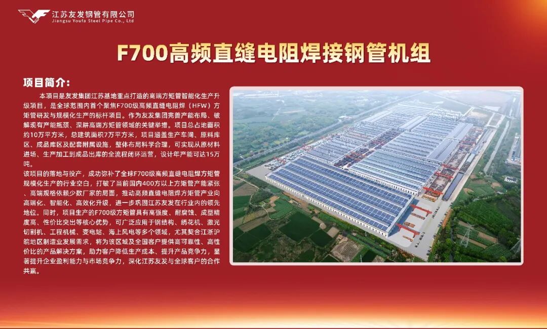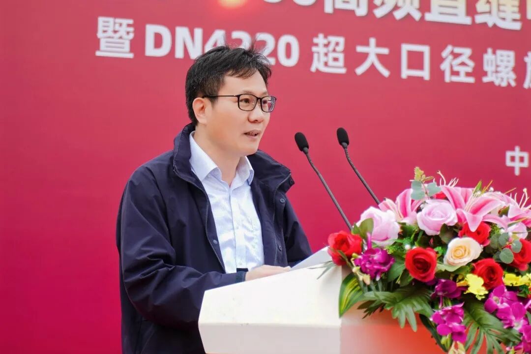 中国钢结构协会专家委员会副主任、中冶建筑研究总院原副总工程师吴耀华先生登台致辞。他表示:友发集团 F700高频直缝电阻焊接钢管机组采用冷热复合成型、在线感应加热回火工艺,成功攻克行业技术瓶颈;同步启动的DN4220超大口径螺旋管及防腐产线,可生产DN4220、30mm 厚X80材质高精度管材,兼具超强防腐性能,两大技术突破,彰显中国智造硬核实力,引领全球焊管技术革新方向。