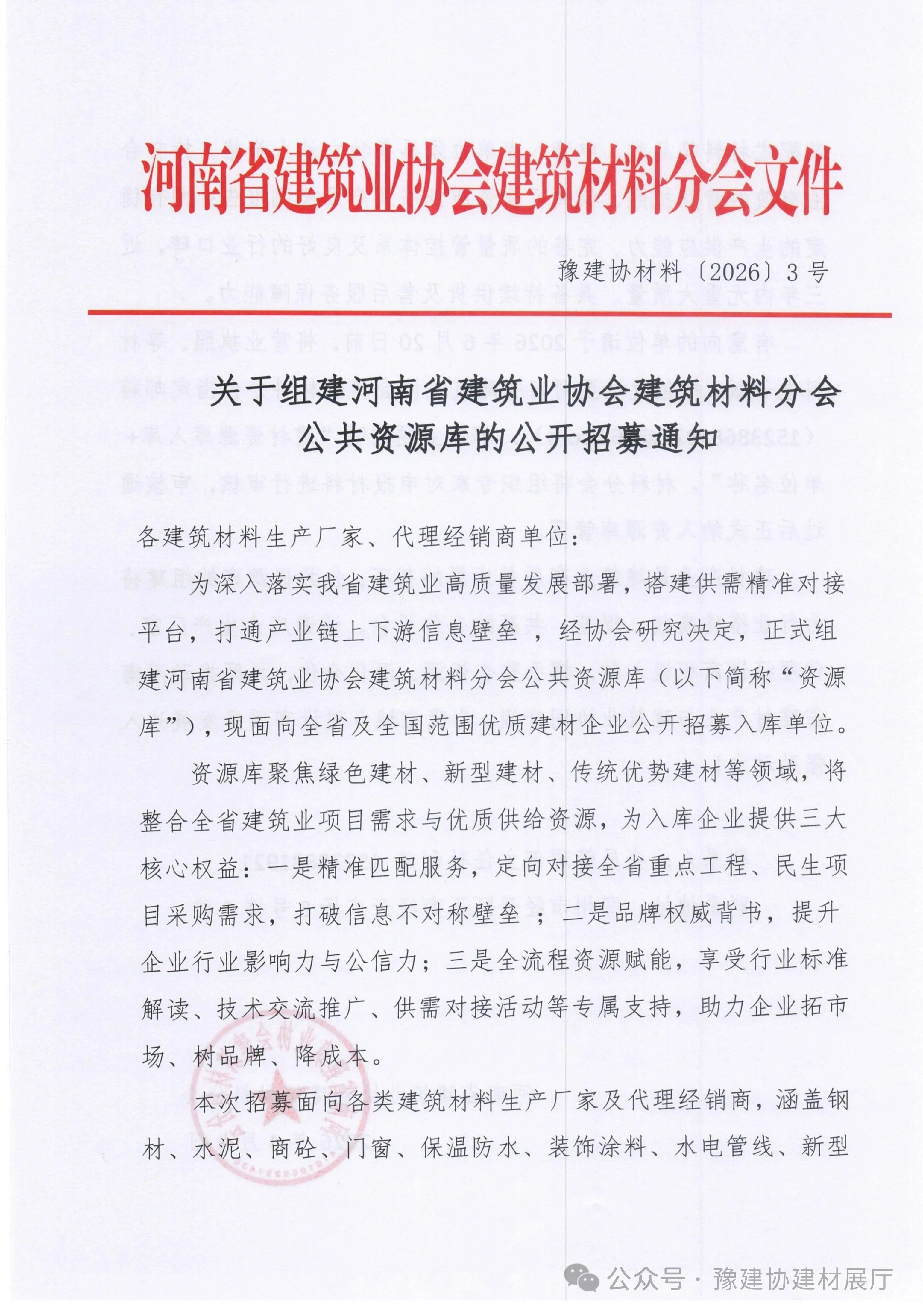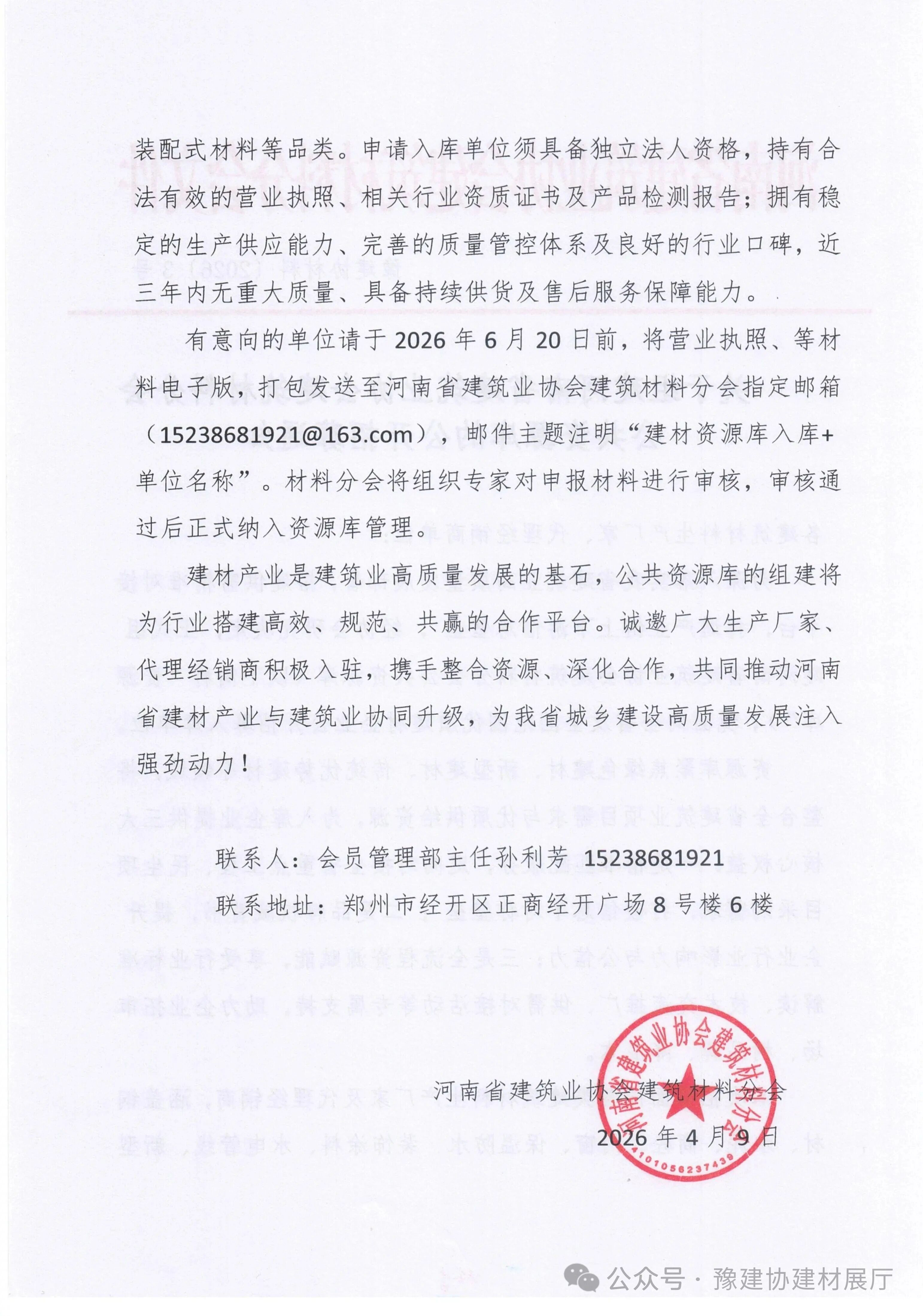 - 关于组建河南省建筑业协会建筑材料分会公共资源库的公开招募通知2026/4/21