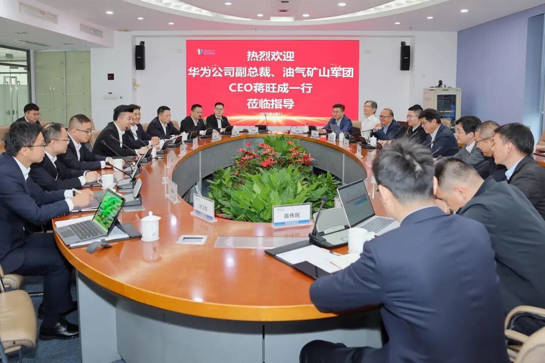 4月21日下午,华为公司副总裁、油气矿山军团CEO蒋旺成一行来集团访问交流。双方共同回顾前期合作成果,并深入探讨数据治理深化、人工智能场景落地等方面内容。集团及公司领导董力源、王郢、丛宝义、龚逸山,以及企管、数智、设备等条线领导出席座谈。