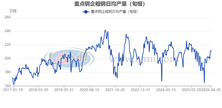 【粗钢旬产】4月中旬重点钢企粗钢日产继续上升
