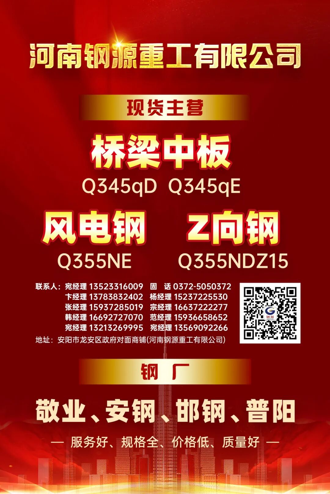 河南钢源重工有限公司主营桥梁中板、风电钢、Z向钢等高端钢材产品,与敬业、安钢、邯钢、普阳等主流钢厂保持深度合作,以“服务好、规格全、价格低、质量好”为宗旨,在业内树立了良好口碑。公司相关负责人表示,能够为兰格钢铁网主办的高规格行业盛会贡献力量,是会员企业的荣幸,也是公司践行“服务行业、共赢发展”理念的具体体现。