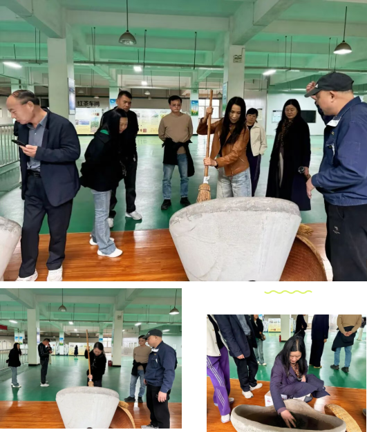 在炒茶师傅的示范下,嘉宾们轮流上阵体验手工炒茶,杀青、揉捻、理条……嫩绿的鲜叶在掌心翻飞,渐渐散发出沁人的栗香。