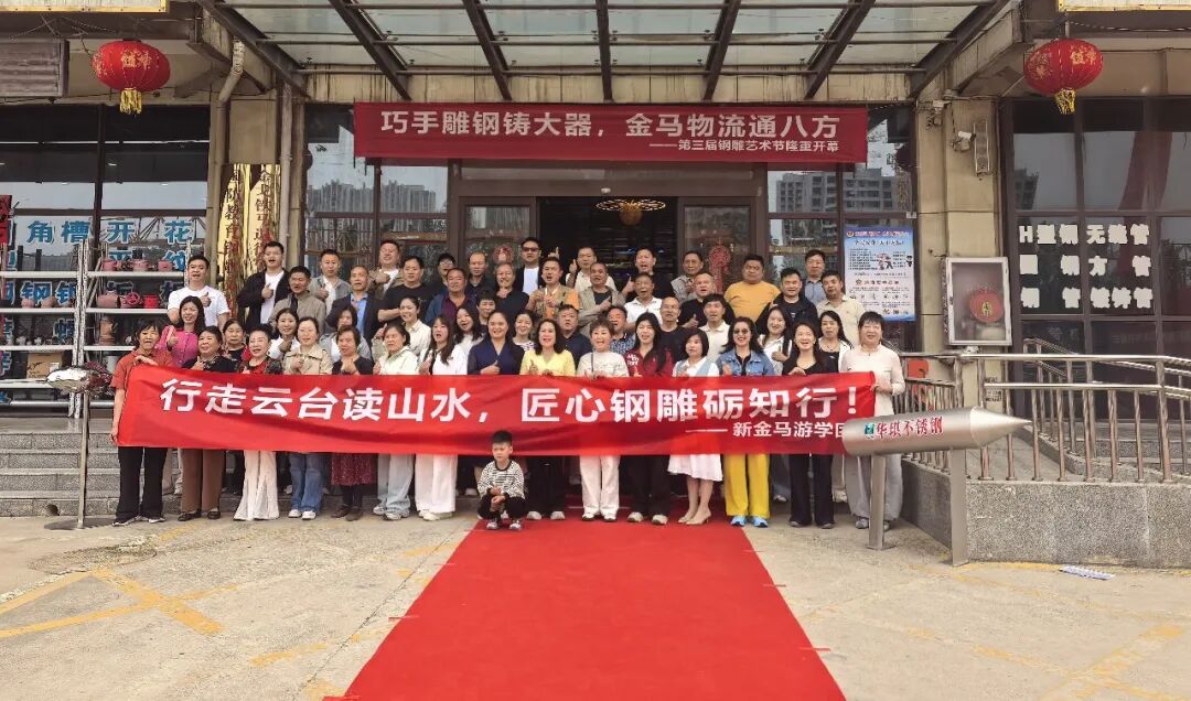 上午9时许,新金马1号楼门前广场已是人头攒动,与会嘉宾们在广场上驻足观摩、热烈交。这座平日里以钢铁贸易著称的现代化物流园区,此刻已然化身一座钢铁与艺术交相辉映的殿堂。
